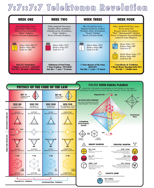 Jose referred to the practice of the 7:7::7:7 as “unlocking the quantum physics of telepathy.” The basis of this practice are the seven radial plasmas which came to him in the form of an extraterrestrial text as described in detail in Time, Synchronicity and Calendar Change.