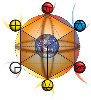These seven radial plasmas, identified with the magma at the center of the Earth, are conducted from a point of origin close to the center of the galaxy through the Earth’s terrestrial poles and into its crystal core. As the 7:7::7:7 manual states: