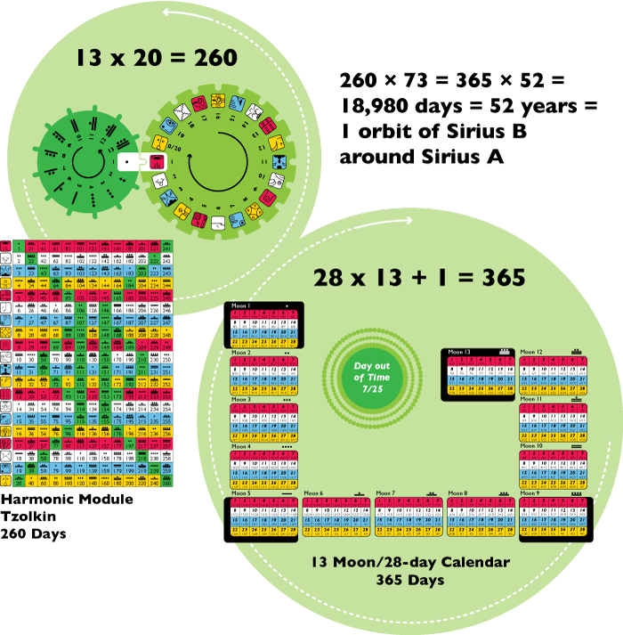 By placing itself in the measure of the 13 Moon/28-day synchronometer and its precise 52-year/orbital ring cycles, the human is synchronized to the Sirius double universe star cycle, lifting it into a truly galactic-cosmic consciousness and order of reality. —Valum Votan