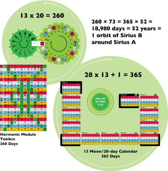 As a solar-galactic calendar with a July 26 synchronization date based on the heliacal rising of the star Sirius, the 13 Moon Dreamspell calendar is ultimately a Sirian timing program. (See graphic below: New Sirius Cycle).