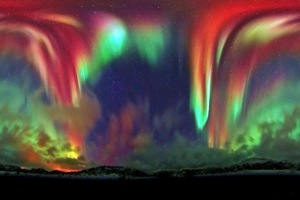 Image Credit & Copyright: Sebastian Voltmer: Higher than the highest building, higher than the highest mountain, higher than the highest airplane, lies the realm of the aurora. Auroras rarely reach below 60 kilometers, and can range up to 1000 kilometers. Aurora light results from energetic electrons and protons striking molecules in the Earth’s atmosphere. Frequently, when viewed from space, a complete aurora will appear as a circle around one of the Earth’s magnetic poles.