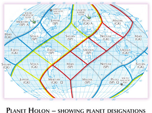 Each of us where ever we find ourselves is responsible to connect to the grid of light in our region “whereon thou standest is holy ground (Exodus 3:5) (see Planetary Geomancy). According to the Planet Holon, each of the 20 regions of the Earth also corresponds to one of the planets. The frequencies of the planets in relation to each other accounts for the creation of different stages or aspects of consciousness. In this way planet Earth (Velatropa 24.3) is a microcosm of the solar system, just as we are a microcosm of the Earth.
