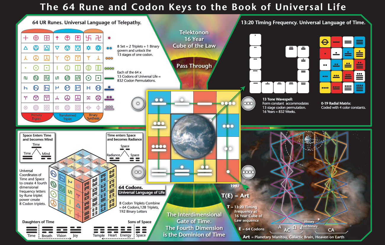 In the 16-year creation of the Cube of the Law, through the activation of the 832 Codon sequences which constitute the 64 perfect wavespells of Universal Life–each wavespell governed by one of the 64 UR runes–the mystery is woven and awakened into super life.