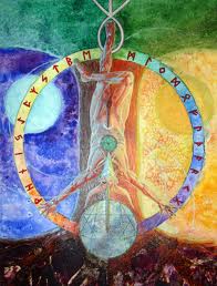 9 spins earlier (9 x 260) on this day Kin 81 Valum Votan and I conducted an alchemical ceremony in dedication to the healing of the world soul. My mind immediately flashed to Odin, who hung for 9 nights on the World Tree Yggdrasil to obtain the feminine secrets. These included the secrets of the runes, words of power, sacred poetry and oracular divinatory magic and prophetic powers.