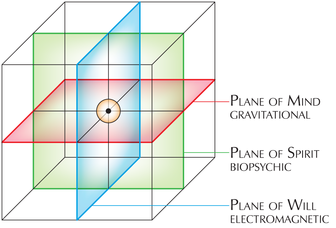 3bodiesOur trinary nature also corresponds to the perfect balance between the 3 planes of consciousness: the plane of mind, the plane of spirit and the plane of will. This is the basis of the cube, 6 + 1 (the One is the central (inner) sun) (see Book of the Cube).