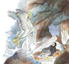 As the morning star disappears Sumerian goddess, Inanna descends into the Underworld where she must pass through 7 gates. At each gate (corresponding to the 7 chakras) she is stripped of one of her powers. Finally she enters the inner sanctum, naked, and stands before the Queen of the Underworld. She is annihilated but then from the love of the people she is resurrected, regains her royal status and arises as the Queen of Heaven.