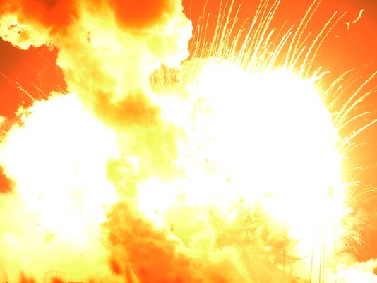 Antares rocket explosion, Blue Crystal Night (October 28, 2014) photo Jay Diem AP