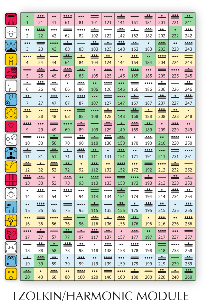 On the 13 Moon calendar, Venus signifies beauty and magic and is overseen by the  archetypes of the Artist and Magician.  Venus is the brightest object in the night sky and shares a unique relationship with our Sun, Kinich ahau, and is rarely more than 60 degrees away from it (from the Earths perspective). Venus is visible as morning star for approximately 260 days: One Tzolkin spin. Tzolkin or harmonic module is a galactic code (see The Mayan Factor by Jose Arguelles). tzolkin-bigA Venus cycle begins with a morningstar appearance, which happens once every 584 days. So every 584 days, Venus rotates upon its axis five times relative to the Sun. In other words, a Venusian day (as measured from solar noon to noon) lasts for nearly 117 Earth-days (584/5 = 116.8). And the next Venus transit will occur in 2117. Five Venus cycles of 584 days equals eight earth years as known by the Maya. (5 x 584 = 8 x 365).