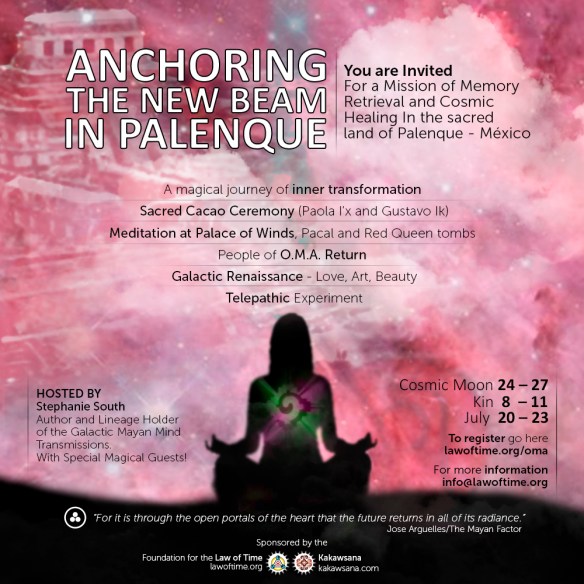 The purpose of our two events in Mexico is to first anchor the new beam of consciousness in Palenque and then to carry the energy to assist in “encoding the future” in the cosmic city of Teotihuacan. This will be followed by a global synchronized meditation. To learn more or register, see here: