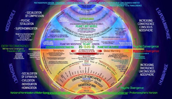 Jose Arguelles/Valum Votan prognosticated that the artificial technosphere will culminate eventually in the awakened noosphere, the planetary sphere of thought, and its collective intelligence.