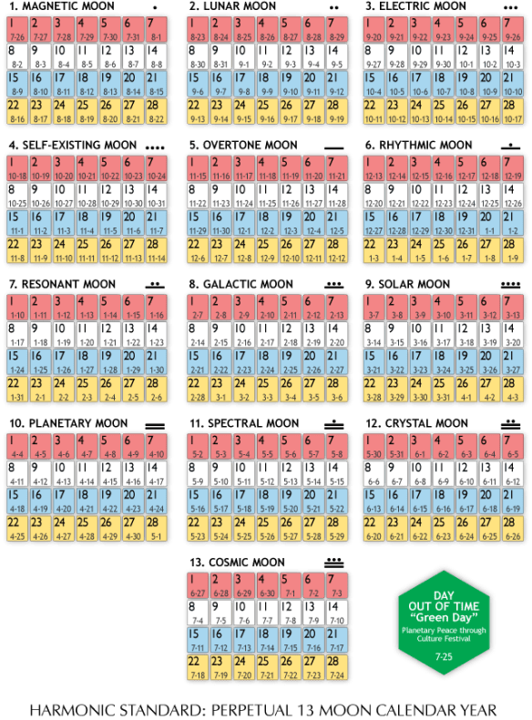 With the concurrent mechanization of the clock was born the disease of global materialism. Henceforth, all understanding of time would stop at the docile and unconscious acceptance of the 12-month Gregorian calendar, only to be calculated in monetary terms according to the arbitrary divisions of clock-time.(see more here: https://calendartruth.info/home/)