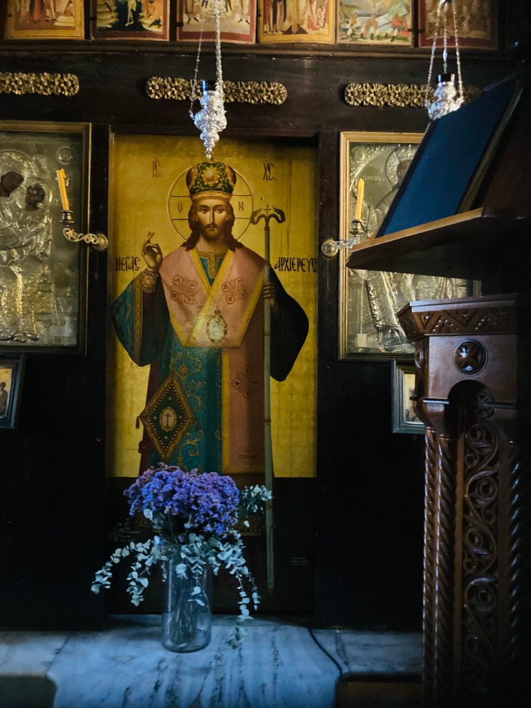 A few days later, on kin 106, I visited the Parthenon and Acropolis. On the walk there, I noted a little church and began having a deja vu. I remember riding my bike to this church in a dream. I went in and was drawn to an image of Christ. I sat and felt the most profound transmission of love. My heart burst open, and I sat there for over an hour, basking in this energy and feeling of warmth and wholeness. I also noted that most churches are built over sacred sites, so I was aware of the power of the land. There was an image of the crucifixion and resurrection. I reflected on how these are the themes we play out repeatedly through different cycles of time.